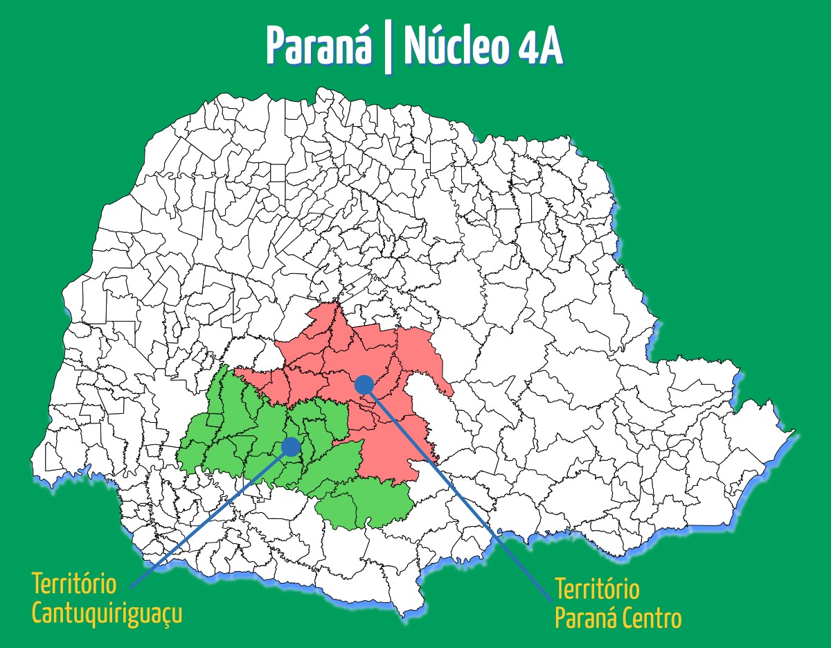 O Ceades – Instituto de Estudos e Assessoria ao Desenvolvimento executa o projeto no denominado Núcleo 4A, abrangendo os 35 municípios nos territórios Paraná Centro e Cantuquiriguaçu, no estado do Paraná.
